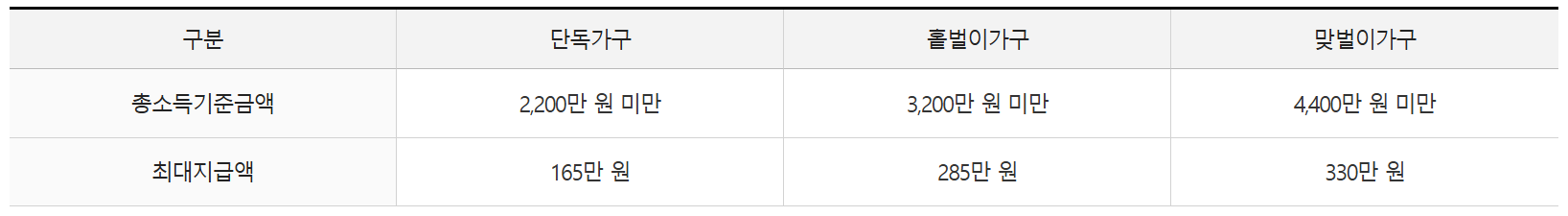 - 1인 가구 : 2,200만 원 미만
