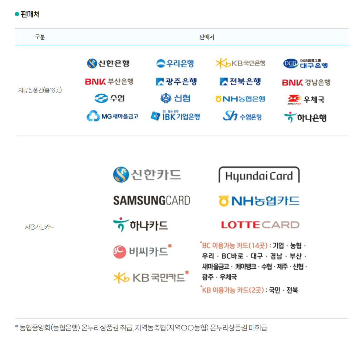 온라인은 카드형 및 모바일형만 가능하며 지류 상품권은 사용이 불가능합니다.