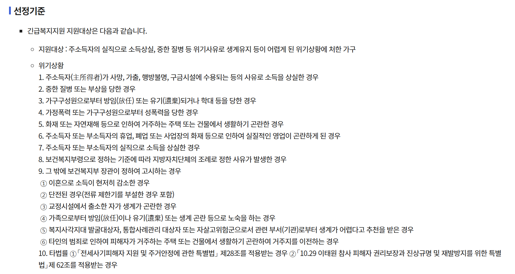 | 신청가능기간 | 위기 상황이 발생한 날로부터 6개월 이내 |