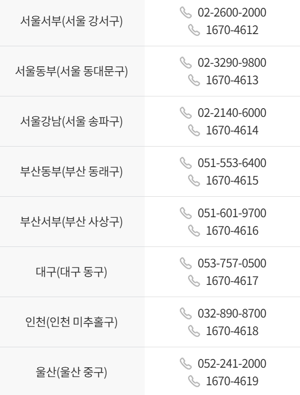 ● 전화번호는 각 지부마다 다르므로, 관할 지부를 찾아 연락하시면 됩니다.