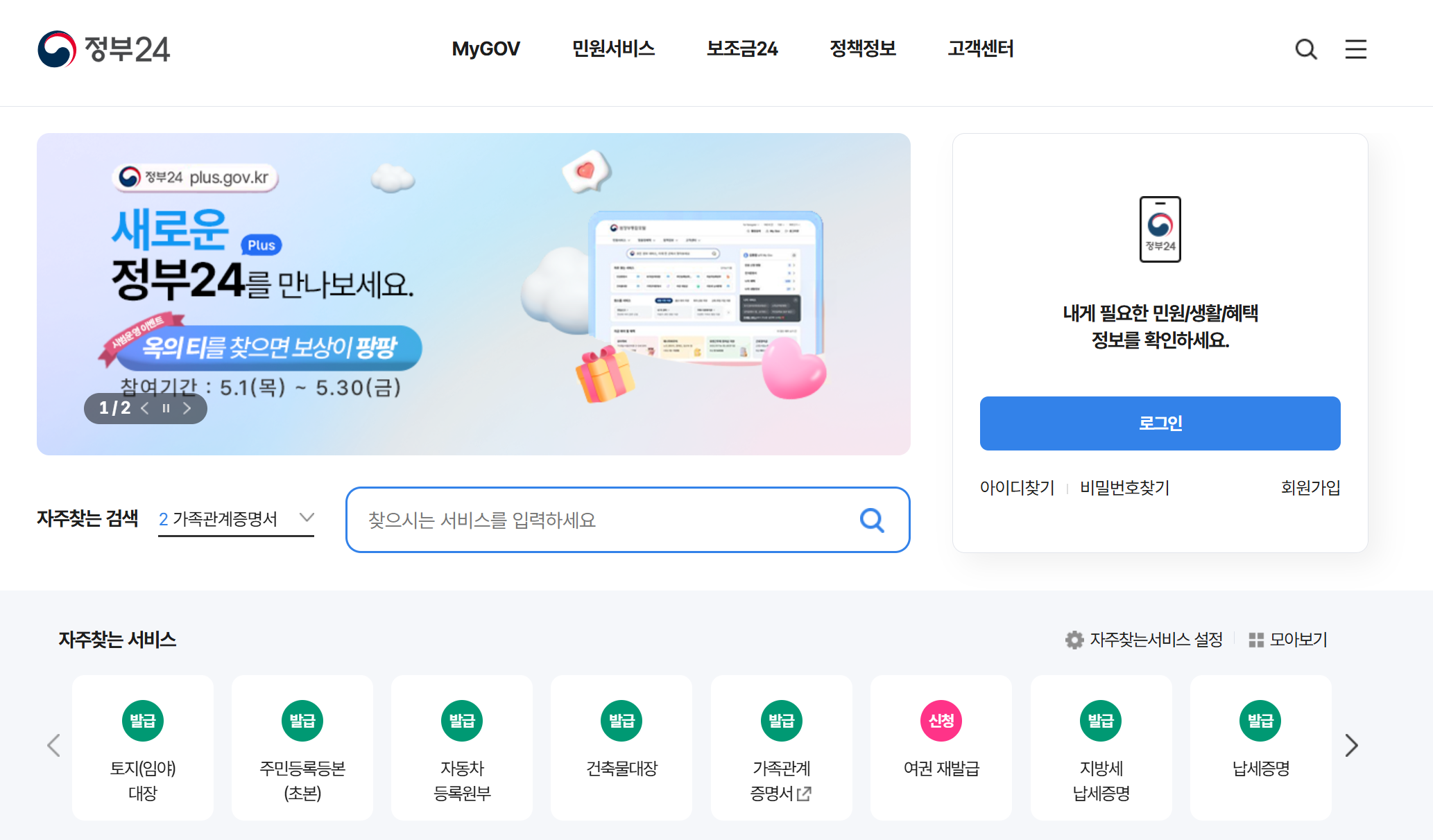 ① 정부24 홈페이지에 접속