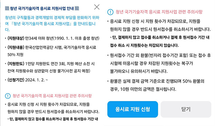 💡팁: 응시료 지원 신청 팝업이 뜨면 꼭 내용을 확인하고, 응시 전까지 한 번 더 ‘신청 여부’를 체크하세요.