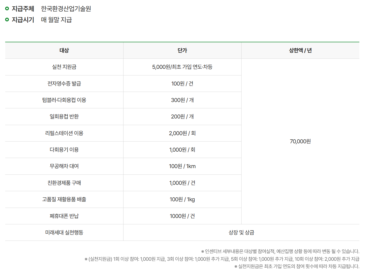 | 혜택 | 최대 연 7만 원 환급 가능 | 간접적 기후 대응 참여 효과 |