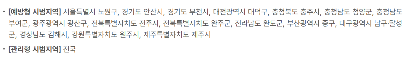 시범사업 기간 동안은 참여가능한 지역이 정해져 있으며, 시범사업 참여를 신청하는 당시 주민등록상 주소지가 아래 해당되어야 합니다.